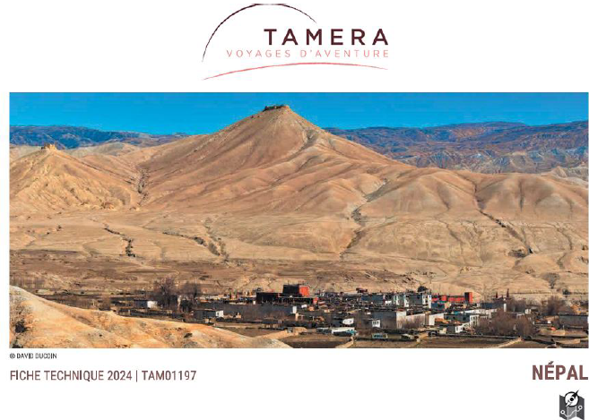 Nous découvrons l'imposant chörten de Tenagaon, avant de franchir le col de Nyi La (3 950 m.). Vue magnifique sur la chaîne des Annapurna. Nous rejoignons ensuite le village de Ghemi et son long (400 mètres) « Mur à Mani ». Les Mani sont des pierres sur lesquelles sont gravées des prières bouddhistes tibétaines. Nous rejoignons le village de Dakmar (terre rouge), adossé au bord d'une falaise rouge et ocre, dans laquelle de nombreuses habitations troglodytes sont creusées.