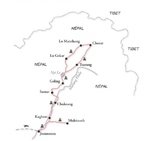 NB : Pendant la mousson, qui dure de la fin du mois de juin à la fin du mois d'août, il est possible que les vols intérieurs soient retardés ou annulés du fait de mauvaises conditions météorologiques. Un transport en véhicule de Jomosom à Katmandou peut être organisé.