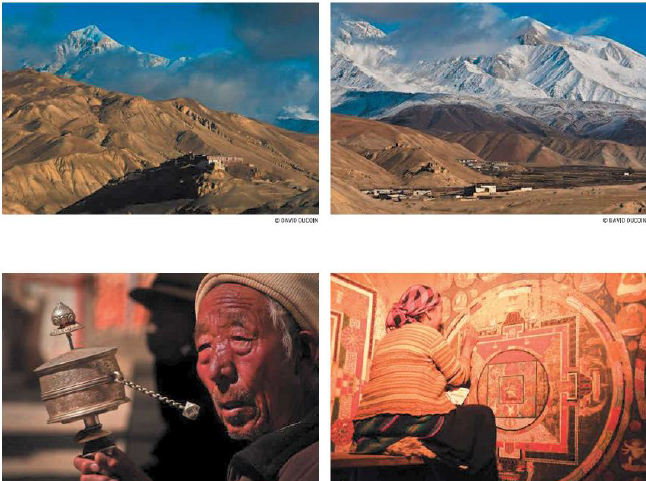 Nous débutons la journée par une montée entre de très belles tours de conglomérat. Nous arrivons au très beau monastère de Lo Gékar (la pure vertu de Lo), qui date du XI e siècle et abrite de belles peintures et sculptures. La paix qui émane de ces lieux invite à la méditation .... ou à la sieste ! Nous franchissons ensuite deux cols, dont un culmine à 4 070 mètres, avant d'apercevoir enfin, Lo Manthang et le monastère de Namgyal et les remparts blancs entourés de champs de blé, de moutarde et de sarrasin, dans lesquels on ne pénètre que par le nord-est.